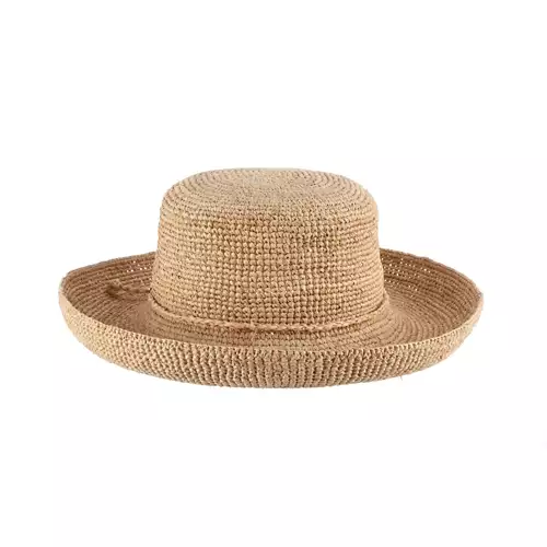 Hand Crocheted Raffia Upturn with 3 1/2″ Brim | Sizing Tie Band